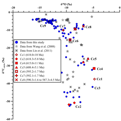 Hongwei Ping, Xin Yang, Xiaofeng Liu, Xiaoqiang Li, Honghan Chen, Se Gong, and Simon C. George (2025). Thermogenic methane release after Marinoan glaciation induced extremely 13C-depleted calcite precipitation in cap dolostones. Geology, https://doi.org/10.1130/G53668.1