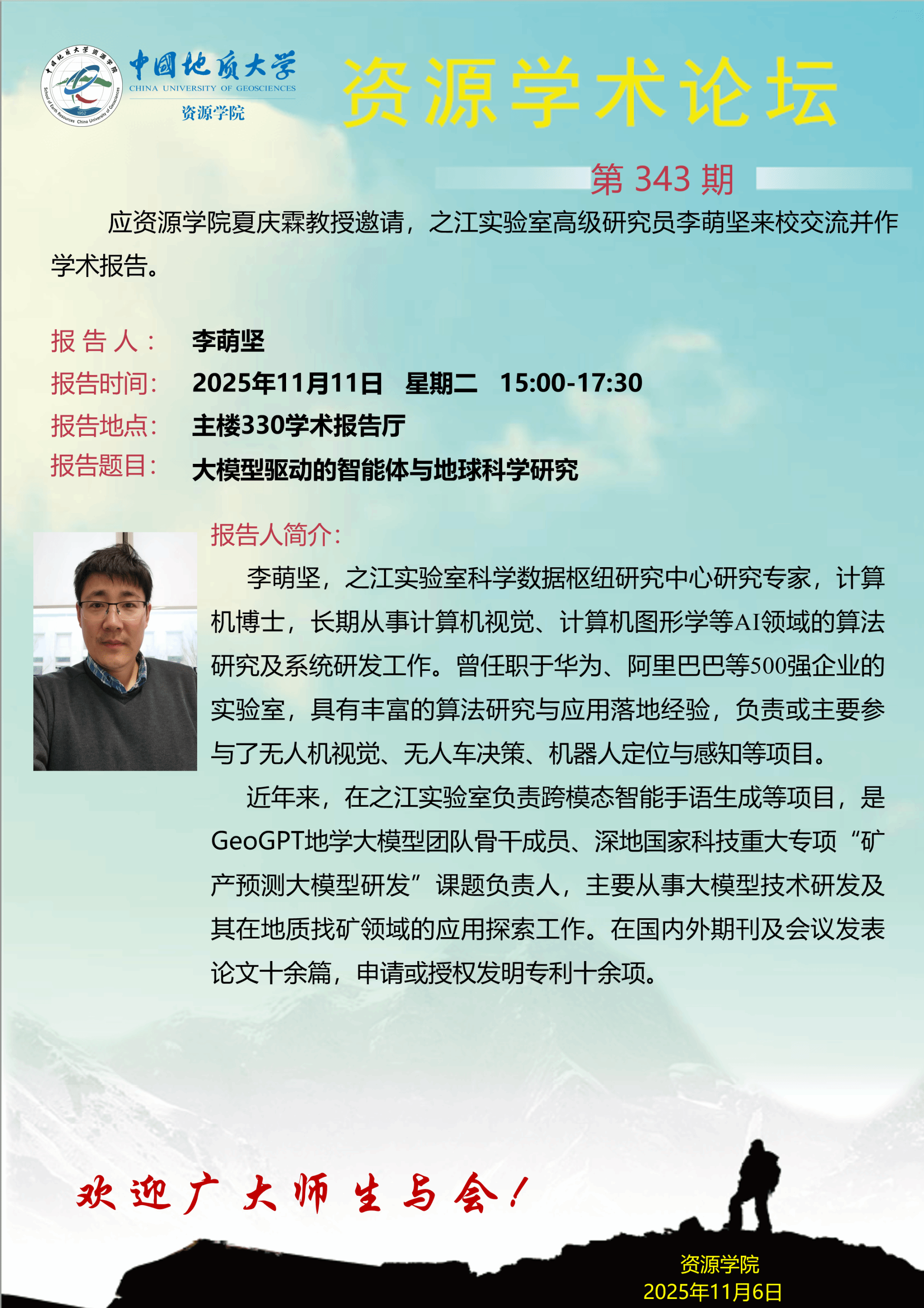 【11月11日】第343期资源学术论坛:李萌坚学术报告